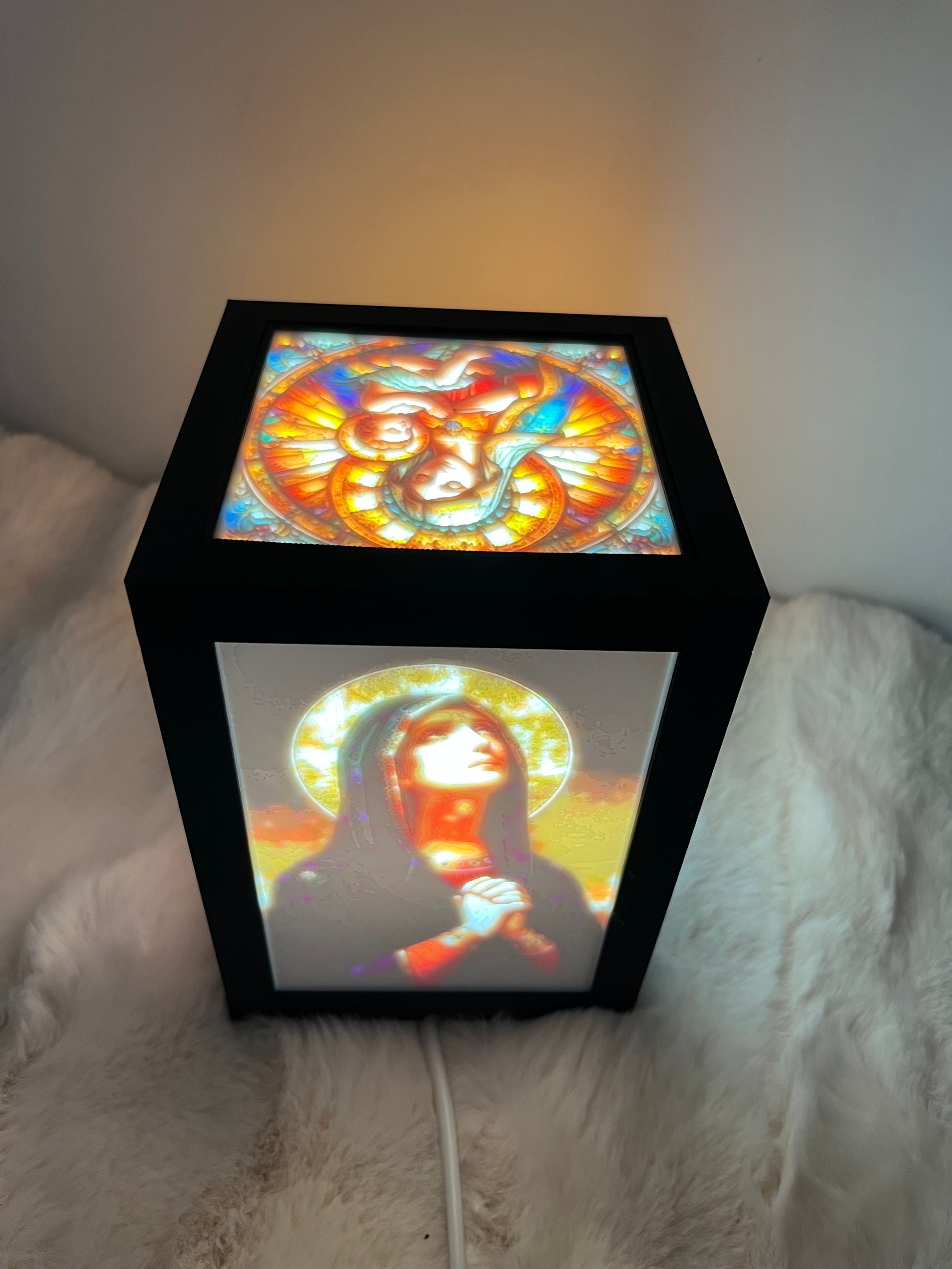 Această lampă religioasă este o expresie a credinței, combinând designul artistic cu tehnologia modernă a imprimării 3D. Cu 5 panouri lytophane personalizate și iluminare LED caldă, lampa adaugă o notă de liniște și spiritualitate oricărui colț al casei tale.