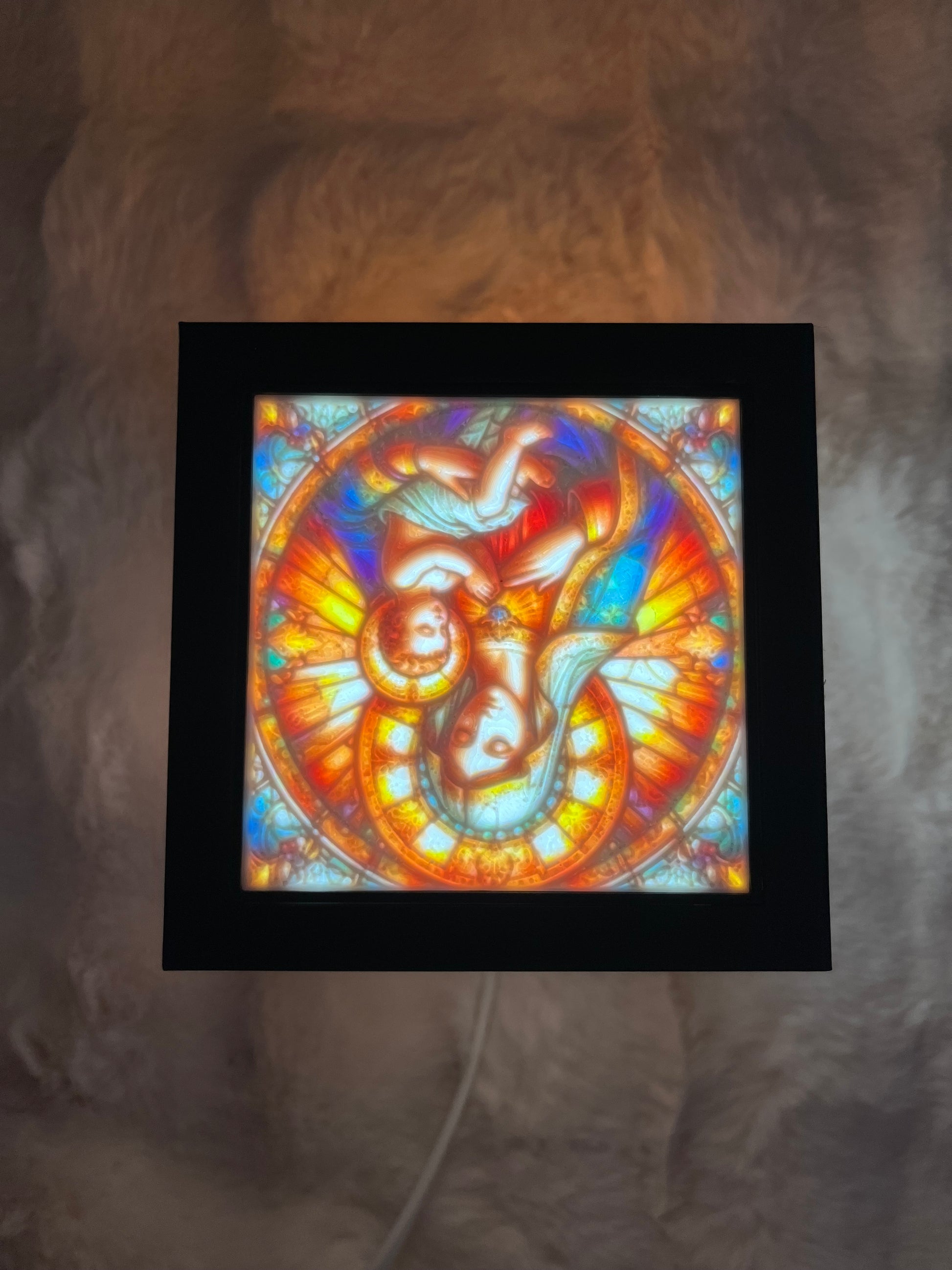 - Design unic cu 5 Lytophane: Panourile imprimate 3D afișează imagini cu simboluri religioase sacre, creând un efect vizual uimitor atunci când sunt iluminate.